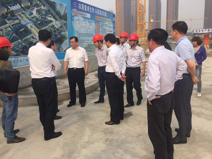 2016年5月6日上午,亳州市市長(zhǎng)杜延安一行蒞臨公司建安文化廣場(chǎng)項(xiàng)目部檢查指導(dǎo)工作,副總經(jīng)理劉軍等陪同調(diào)研。