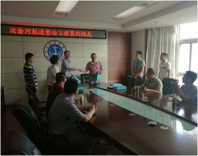 2016年8月10日下午,公司與淮北市港航投資公司在淮北市地方海事局五樓會(huì)議室共同舉行了“沱澮河航道整治工程簽約儀式”?;幢备弁豆径麻L(zhǎng)丁杰、總經(jīng)理汪順利、淮北市海事局局長(zhǎng)鐘德平、公司董事長(zhǎng)、黨委書記、總經(jīng)理李世龍、副總經(jīng)理侯力、各標(biāo)段項(xiàng)目負(fù)責(zé)人、總工出席簽約儀式。