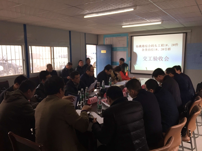 3月10日,在仙桃港碼頭項(xiàng)目現(xiàn)場會(huì)議室召開的仙桃港碼頭工程驗(yàn)收會(huì)議上,武漢港務(wù)集團(tuán)總經(jīng)理助理徐繼傳正式宣布仙桃港碼頭1#、2#件雜貨泊位,1#、2#引橋通過單位工程驗(yàn)收。仙桃市交通局、海事局、質(zhì)監(jiān)站、武港集團(tuán),設(shè)計(jì)院、監(jiān)理組、港灣檢測,施工方等代表參加了會(huì)議。