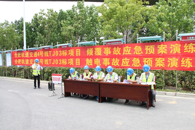 合肥市軌道交通4號(hào)線TJ03標(biāo)工程項(xiàng)目部開(kāi)展傾覆事故、觸電事故應(yīng)急預(yù)案演練