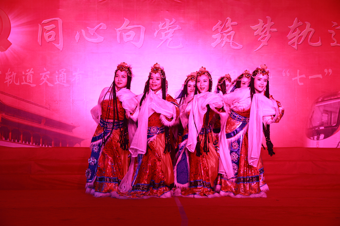 6月下旬,安徽交航合肥軌道交通4號線TJ03項目部接到演出邀請后,公司領導十分重視,公司工會積極組織職工排練節(jié)目。經(jīng)過5天的緊張排練,該節(jié)目順利通過合肥軌道公司的初審、二審,從38個節(jié)目中脫穎而出,成為15個參演節(jié)目中一朵靚麗的小花,在合肥5條軌道交通線四五十家施工企業(yè)中只有安徽交航、安徽路橋、中鐵四局等9家單位參演。歡快的舞曲、鮮明的節(jié)奏及歌頌的詞句展現(xiàn)出在解放西藏“一面進軍、一面修路”的戰(zhàn)斗中,在實現(xiàn)民主改革的日子里,在邊疆自衛(wèi)反擊的戰(zhàn)場上,解放軍和藏族人民結下的魚水情意。演員們用飽滿的情緒和奔放的舞姿將演出推向高潮。