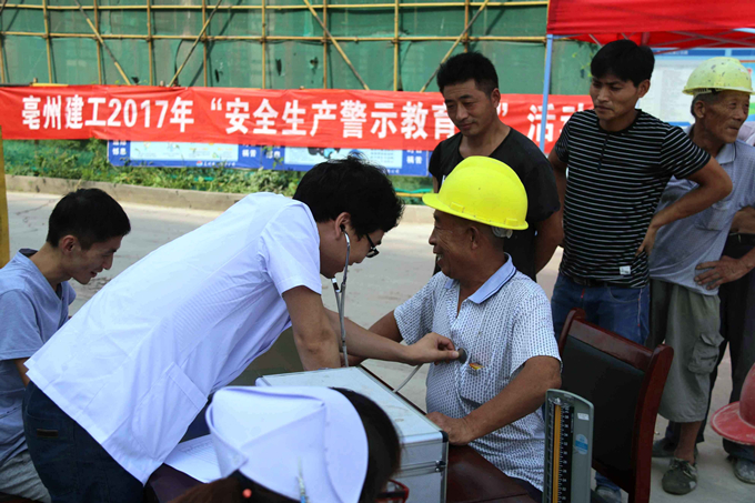 為體現(xiàn)公司對(duì)一線操作工人的關(guān)注與關(guān)懷,進(jìn)一步提高項(xiàng)目操作工人的自我保護(hù)意識(shí),助力項(xiàng)目的安全生產(chǎn),按照公司安全生產(chǎn)警示教育月活動(dòng)安排,8月17日,亳州建工組織開(kāi)展了操作工人免費(fèi)健康體檢活動(dòng)。