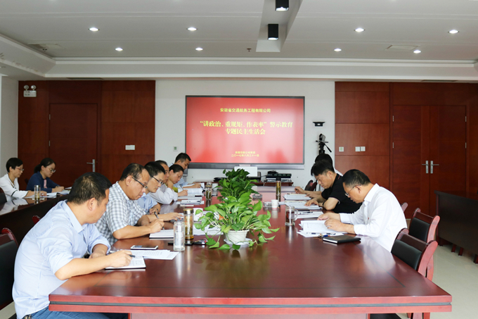 8月31日下午,安徽交航公司召開了“講政治、重規(guī)矩、作表率”警示教育專題民主生活會。集團(tuán)公司黨委委員、副總經(jīng)理許克順,集團(tuán)公司黨委工作部主管章志勝到會指導(dǎo)。