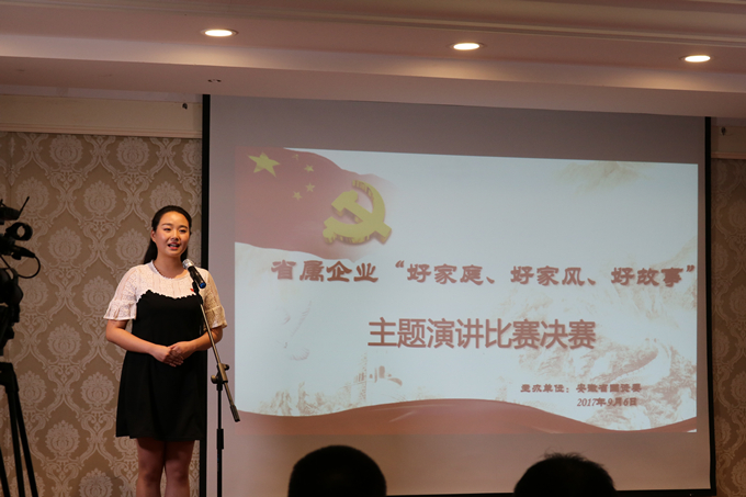 圍繞“好家庭、好家風(fēng)、好故事”主題,為弘揚(yáng)傳統(tǒng)家庭美德,建設(shè)新時(shí)代家風(fēng)文化,9月6日下午,省國(guó)資委在安徽飯店舉辦了省屬企業(yè)“好家庭、好家風(fēng)、好故事”主題演講比賽決賽,我公司鄭順瑤代表集團(tuán)公司參加了比賽,并榮獲三等獎(jiǎng)。