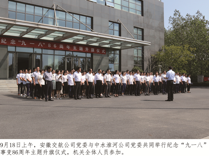 【編者按】1931年9月18日,日本帝國(guó)主義悍然發(fā)動(dòng)了震驚中外的“九一八”事變。自此,中國(guó)人民開始了長(zhǎng)達(dá)14年之久的抗日戰(zhàn)爭(zhēng)。為了紀(jì)念“九一八”事變86周年,教育廣大職工銘記歷史、勿忘國(guó)恥、奮發(fā)圖強(qiáng)、振興中華,安徽交航公司近日舉行了紀(jì)念“九一八”事變86周年愛國(guó)主義教育系列主題活動(dòng)……