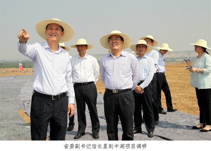淮北市委市政府高度重視中湖項(xiàng)目,自開(kāi)工以來(lái),已有來(lái)自省委、省人大、省政協(xié)等單位的10余位省部級(jí)領(lǐng)導(dǎo)蒞臨現(xiàn)場(chǎng)視察工作?;幢笔形瘯?shū)記、市人大常委會(huì)主任黃曉武常邀各級(jí)領(lǐng)導(dǎo)登上中湖一期1#湖心島視察,并親自當(dāng)起講解員,描繪未來(lái)淮北“一帶雙城三青山、六湖九河十八灣”的美好藍(lán)圖。