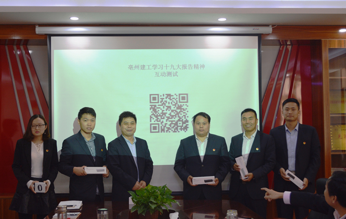 為進(jìn)一步加強黨的十九大報告學(xué)習(xí),確保學(xué)深悟?qū)?入腦入心,達(dá)到真學(xué)、真懂、真信、真用的實在效果。近日,亳州建工黨支部利用黨員活動日組織開展了學(xué)習(xí)十九大報告精神測試活動,全體黨員、中層以上人員參與。