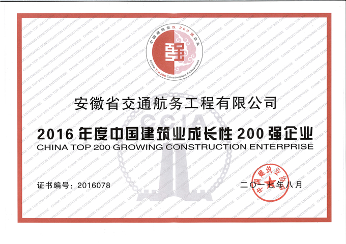 公司將以此次榮獲中國建筑業(yè)200強企業(yè)為契機,著力提升企業(yè)整體質量水平和科技創(chuàng)新能力,進一步提高企業(yè)管理水平,培養(yǎng)高素質人才隊伍,創(chuàng)建更多精品工程,樹立安徽交航優(yōu)質品牌形象。