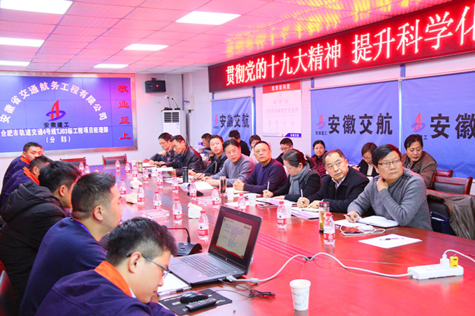 2017年12月19日下午,安徽建工集團(tuán)黨委委員、副總經(jīng)理許克順,經(jīng)營(yíng)部副主任楊利生等一行,蒞臨交航軌道交通4號(hào)線項(xiàng)目部宣貫“十九大”會(huì)議精神。安徽交航黨委書(shū)記、董事長(zhǎng)、總經(jīng)理李世龍等班子成員,機(jī)關(guān)各部門(mén)負(fù)責(zé)人,地鐵項(xiàng)目部全體成員參加宣貫會(huì)。
