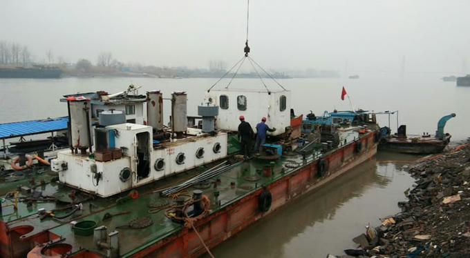 因工作需要,皖吸十二號船隊將緊急調(diào)往駟馬山工地施工。然而,當(dāng)時的皖吸十二號船隊正停泊在淮北中湖工地,停泊水域的四周不具備通航條件,當(dāng)初進(jìn)場的時候耗費(fèi)了大量的人力、財力和時間。