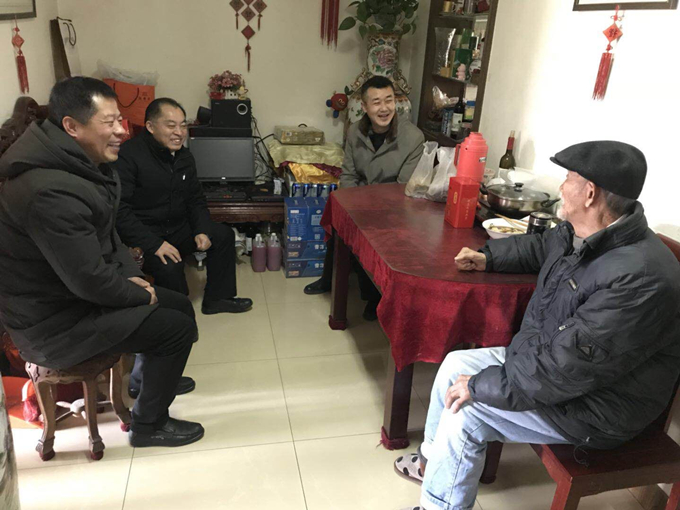 在離休干部袁道甫家,李書記和汪總同袁老進(jìn)行了親切的交談,仔細(xì)詢問了他的身體狀況及家庭生活情況,叮囑他要保重身體,同時將慰問金送到了袁老手中,并送上了公司及全體在職員工對于離退休老同志的節(jié)日問候及新春祝福!