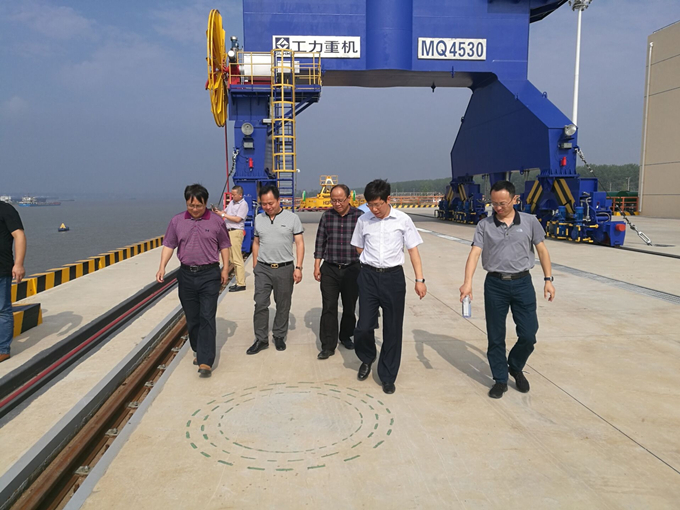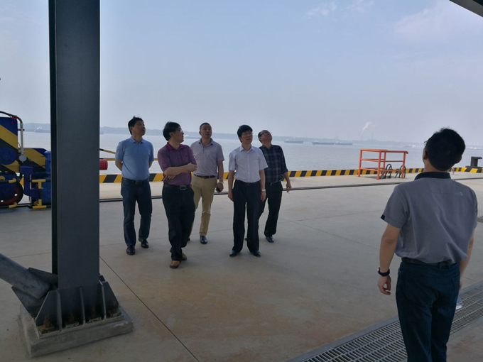 2018年5月24日上午,集團公司副總經(jīng)理王厚良,集團工程管理部主任童宗勝,集團安全監(jiān)察局副局長葛輝,集團工程管理部主管周曉彧,在公司副總經(jīng)理劉朝發(fā)、公司生產(chǎn)總調(diào)度周和友陪同下,深入安徽交航武漢新港張家灣港區(qū)晨鳴林紙一體化項目綜合碼頭工程檢查指導(dǎo)工作。