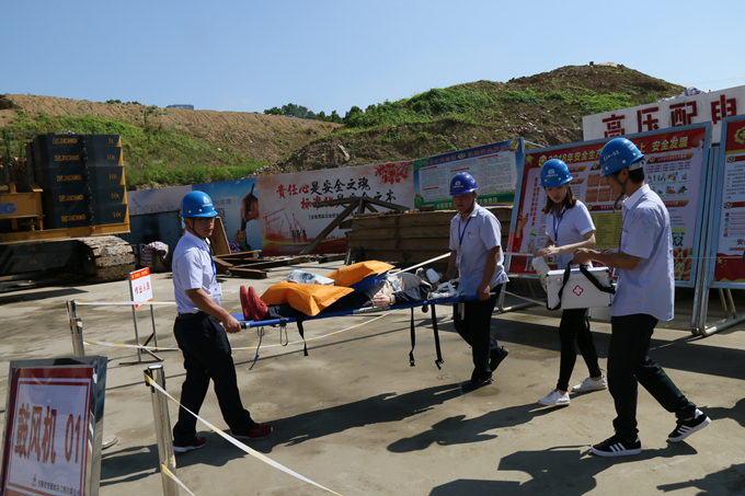 上午9時許,演練正式開始。本次演練模擬物體打擊事故應(yīng)急救援預(yù)案演練,現(xiàn)場安全員用對講機報告項目安全總監(jiān),項目安全總監(jiān)接報告后立即報告項目經(jīng)理,并啟動應(yīng)急救援預(yù)案。對各小組進(jìn)行了合理分工,第一時間搶救受傷工人并撥打120救護(hù)車送往附近醫(yī)院。最終經(jīng)過救援,受傷工人得到及時救治。事故還演練了受限空間窒息性氣體中毒事故的處理過程。整個演練過程緊張有序,所有參演人員分工明確,應(yīng)急反應(yīng)與處理及時、規(guī)范,現(xiàn)場急救物資準(zhǔn)備齊全,順利完成了既定應(yīng)急演練科目。演練過后,項目部管理人員對此次應(yīng)急演練進(jìn)行了總結(jié)并與公司安管人員進(jìn)行了學(xué)習(xí)交流。