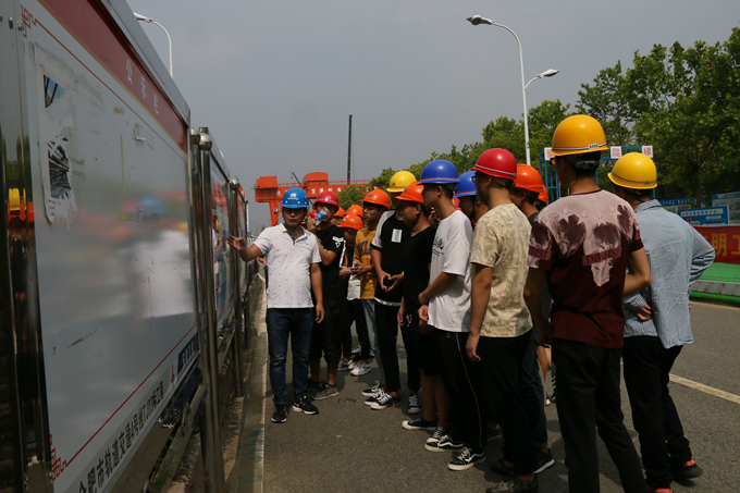 6月21日上午,合軌4號線TJ03標項目部施工現場迎來了一批年輕的客人,他們來自安徽水利水電職業(yè)技術學院。項目部副經理金振興、工程部部長張功印對各位同學進行了熱情迎接,并代表項目部領導班子對同學們的到來表示熱烈歡迎。