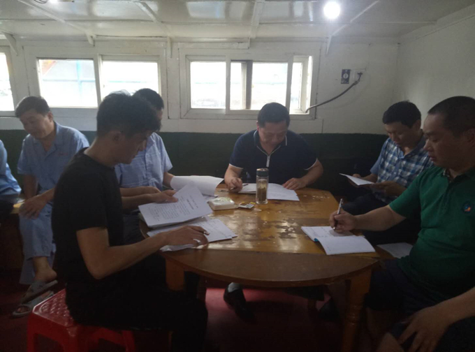 皖吸拾壹號與蛟龍?zhí)柾谀啻邙P臺修船,船員、基層黨員都比較集中,大家對董總一行的到來感到親切和歡迎。董雙武與部分職工進(jìn)行了促膝談心,了解生產(chǎn)一線同志們的思想狀態(tài)。隨后召開基層調(diào)研座談會,就黨建、生產(chǎn)、企業(yè)文化與員工生活等方面問題向大家征求意見和建議,會上對相關(guān)問題同大家進(jìn)行了探討和廣泛交流,希望分公司各項(xiàng)管理工作得到群眾的理解和支持。