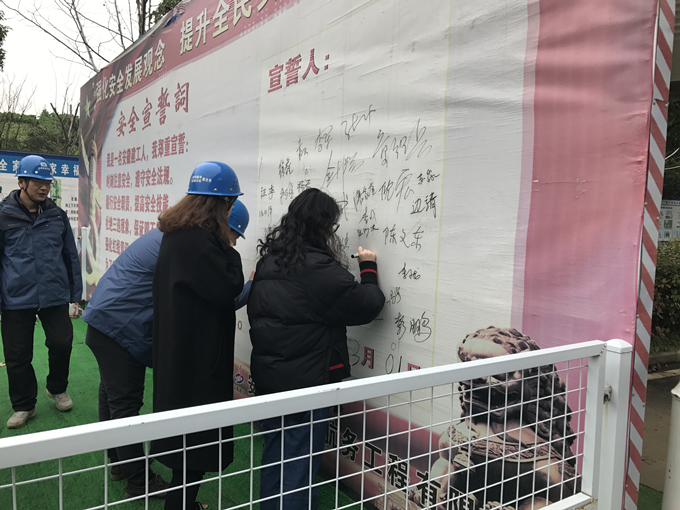 當日上午8:10,安全盾構指揮中心集合組織聯(lián)合安全大檢查,項目經(jīng)理徐鑫帶班排查隱患并整治。9:00在安全體驗區(qū),全體職工莊嚴地舉起右手,由項目安全總監(jiān)朱紅輝領誓,集中舉行了宣誓活動,并鄭重地在安全質量宣誓牌上逐一簽名。全國各類安全事故的頻頻發(fā)生,為我們敲響了警鐘。為持續(xù)有效筑牢項目安全生產(chǎn),合軌四號線TJ03標項目部結合實際,要求全體參建員工認真學習貫徹落實各項安全制度法規(guī),認真開展各項安全專題活動,形成“人人懂安全、人人抓安全、人人要安全、人人保安全”的氛圍。