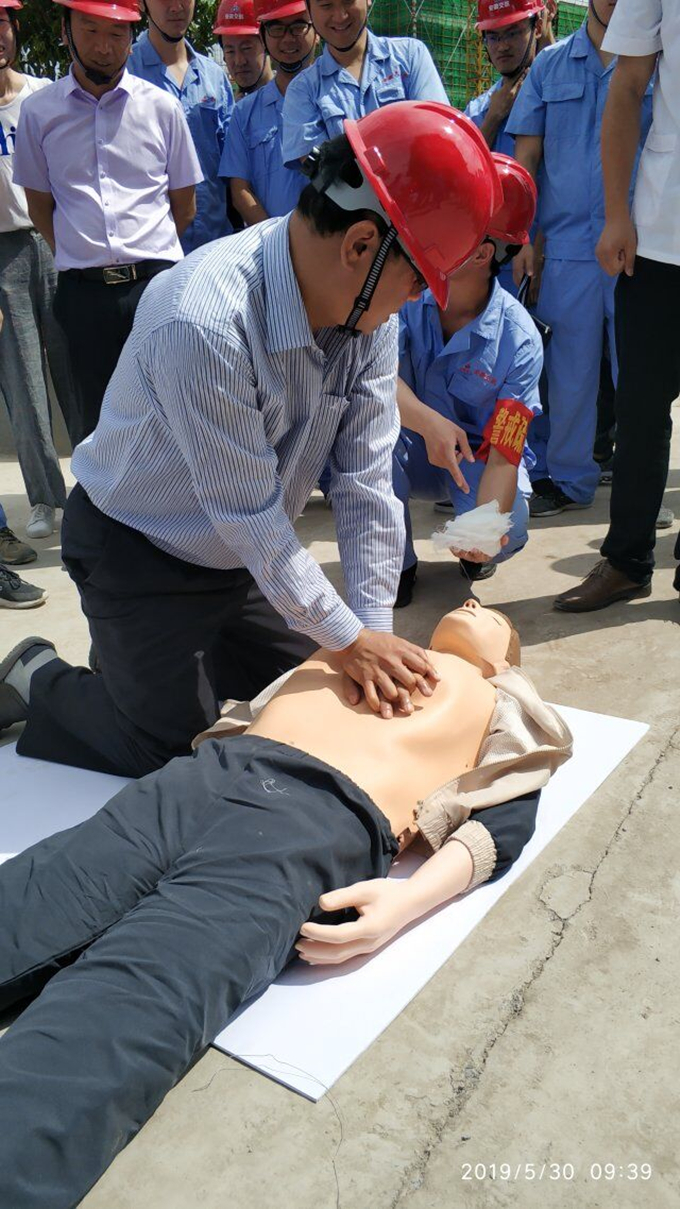 最后由黃山市第三人民醫(yī)院主任醫(yī)生為我們指導(dǎo)、示范了心肺復(fù)蘇和頭部包扎的急救手法,出席現(xiàn)場(chǎng)活動(dòng)的公司領(lǐng)導(dǎo)和所有安全員分別進(jìn)行了試練習(xí)。心肺復(fù)蘇和頭部包扎是施工現(xiàn)場(chǎng)發(fā)生安全事故最基本的急救手法,今天的活動(dòng)讓我們參加活動(dòng)的所有人了解并掌握此項(xiàng)急救技能,為以后的實(shí)際生產(chǎn)活動(dòng)提供保障。