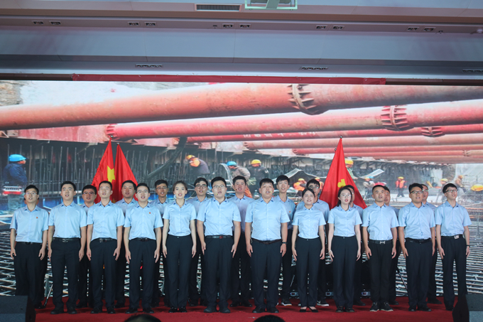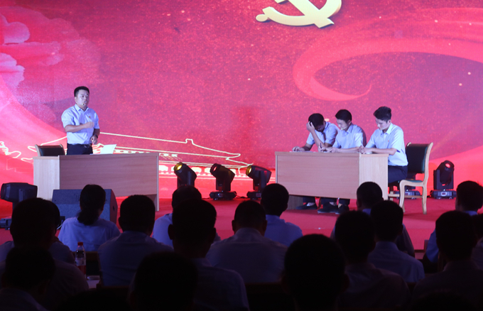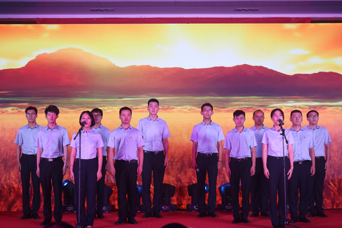 演出伊始,由機(jī)關(guān)黨支部、團(tuán)委表演的《七月的鮮花獻(xiàn)給黨》順利拉開了本次主題文藝匯演的帷幕。由工會(huì)表演的快閃《我和我的祖國(guó)》場(chǎng)面恢弘,引人入勝;《團(tuán)結(jié)就是力量》《祖國(guó)不會(huì)忘記》《軍港之夜》《歌唱祖國(guó)》《同一首歌》等一首首合唱紅歌,氣勢(shì)磅礴,激情萬(wàn)丈,抒發(fā)愛黨情懷;《開黨會(huì)》《我要入黨》等小品節(jié)目?jī)?nèi)涵深刻,以小見大,體現(xiàn)黨性修養(yǎng);《激流勇進(jìn)》《我的祖國(guó)》等舞蹈翩翩起舞,優(yōu)美動(dòng)人,體現(xiàn)朝氣蓬勃的精神面貌??彀濉墩f說咱交航》,朗誦《我的祖國(guó)》,獨(dú)唱《不為誰(shuí)而作的歌》,傳統(tǒng)曲藝《三句半》感情真摯,寓意深遠(yuǎn),體現(xiàn)了青春活力和對(duì)美好未來的深切向往。文藝匯演在公司領(lǐng)導(dǎo)帶領(lǐng)機(jī)關(guān)全體黨員合唱的《我宣誓》中圓滿落下帷幕。