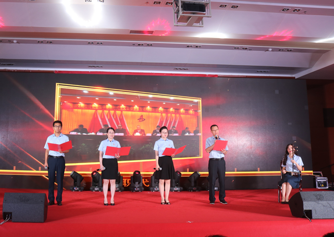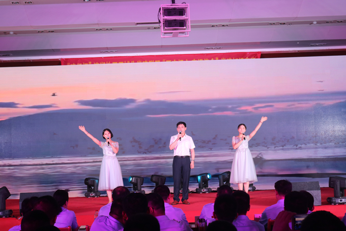 交航公司機(jī)關(guān)全體黨員、所屬各黨支部觀眾代表、“一先兩優(yōu)”大會(huì)受表彰人員、2019新入職員工以及部分職工家屬歡聚一堂,煙墩街道西杭社區(qū)黨支部書記田思萍應(yīng)邀出席本次文藝匯演。公司黨委書記、董事長(zhǎng)李世龍?jiān)趨R演開始前致辭,勉勵(lì)大家堅(jiān)定信念、開拓創(chuàng)新,以更加昂揚(yáng)的斗志、更加扎實(shí)的工作和更加優(yōu)異的成績(jī)向黨的九十八周年獻(xiàn)禮。