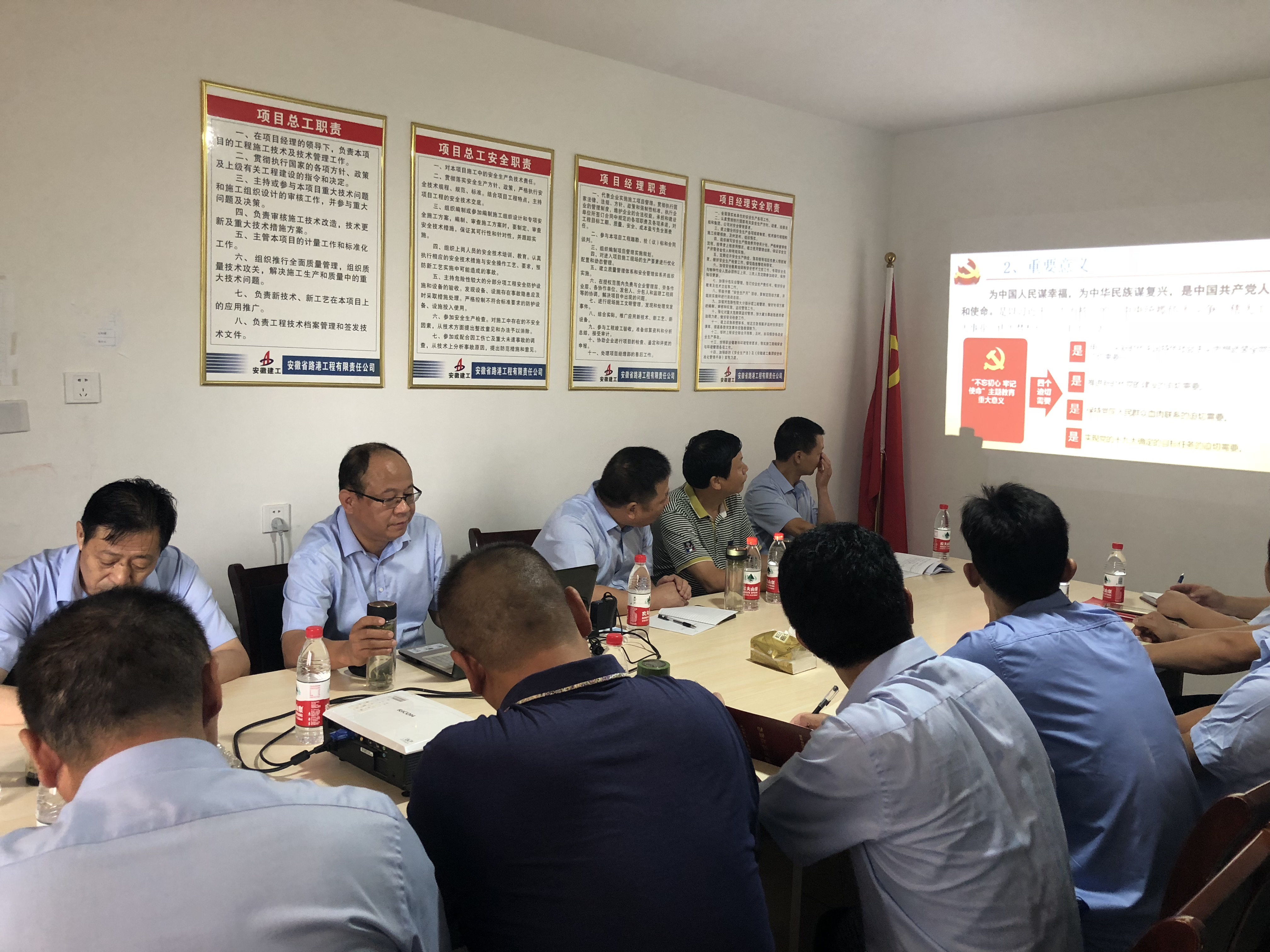 通過此次主題教育黨課,項目人員更加深入理解認識“不忘初心、牢記使命”的重要意義,堅定了理想信念,全體成員統(tǒng)一思想、團結一致,為工程建設貢獻自己的力量。