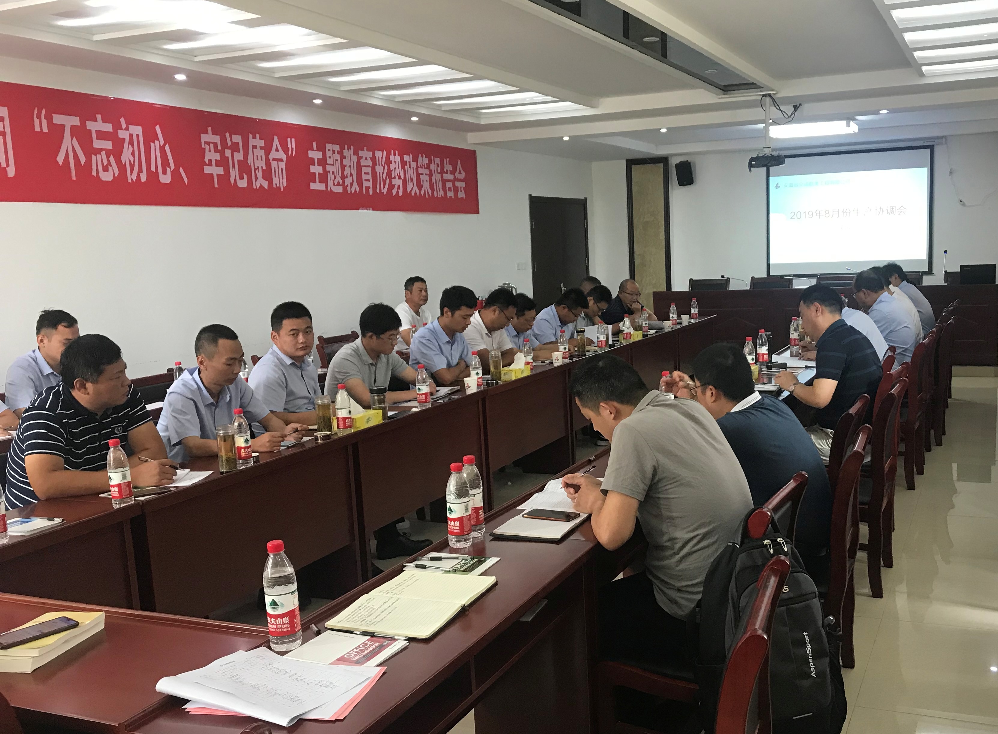 公司8月份生產(chǎn)進(jìn)度協(xié)調(diào)會(huì)于2019年8月9日在蒙城項(xiàng)目公司召開(kāi),會(huì)議由生產(chǎn)總調(diào)度、工管部主任周和友主持,公司黨委副書(shū)記、總經(jīng)理方申柱、生產(chǎn)副總經(jīng)理劉朝發(fā)、機(jī)關(guān)相關(guān)部門(mén)、分公司、各項(xiàng)目公司、項(xiàng)目部等主要負(fù)責(zé)人參加會(huì)議。