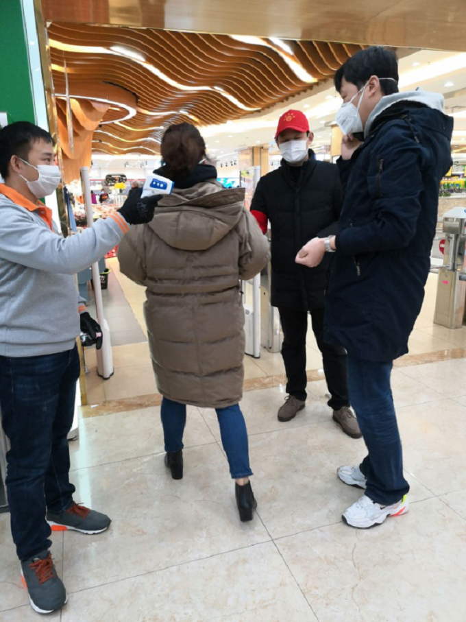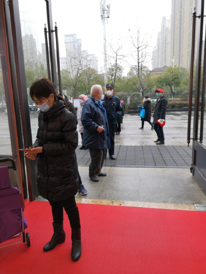 志愿者們不畏嚴寒,在社區(qū)疫情防控相關(guān)工作的統(tǒng)一調(diào)度安排下,到社區(qū)聯(lián)家超市,戴著小紅帽、紅袖章,加強防疫知識宣傳,協(xié)助超市員工做好人員限流工作,體溫測量、發(fā)放限號牌1000人次。引導(dǎo)群眾自覺排隊,積極配合疫情防控工作。