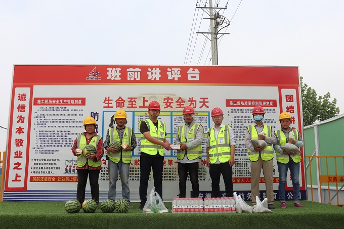 亳州PPP項目部始終堅持以人為本的管理理念,關(guān)心重視職工的身體健康和安全生產(chǎn)。在發(fā)放現(xiàn)場,項目領(lǐng)導班子首先向一線施工人員表達了“五一”節(jié)日的問候,隨后向大家宣傳了防暑降溫常識,囑咐他們在高溫下作業(yè)時一定要做好防暑降溫措施,增強自我防暑意識,保障各項工作安全有序進行。