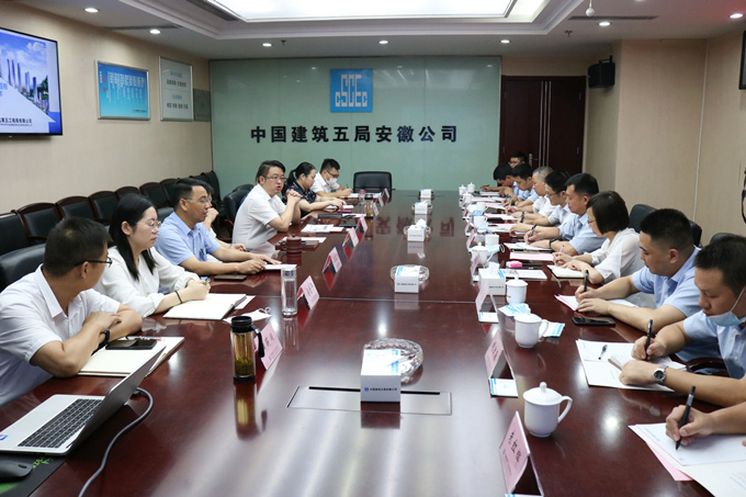 7月3日上午,公司黨委副書記、總經(jīng)理方申柱一行10人到中建五局安徽公司考察交流,并與中建五局安徽公司黨委副書記、總經(jīng)理陳超平會(huì)談。雙方就信息化建設(shè)、成本管理、投資運(yùn)營(yíng)、績(jī)效考核、項(xiàng)目管理以及未來(lái)可能開展合作的領(lǐng)域等方面,進(jìn)行了深入溝通和交流。中建五局安徽公司副總經(jīng)理、總工程師陳洪根,總經(jīng)理助理兼皖中分公司黨總支書記、總經(jīng)理文世玉,副總工程師兼工程部經(jīng)理文忠于,以及相關(guān)職能部門負(fù)責(zé)人;公司黨委委員、副總經(jīng)理張瓊,生產(chǎn)總調(diào)度、工程管理部主任周和友,以及機(jī)關(guān)有關(guān)職能部門、子分公司、項(xiàng)目部負(fù)責(zé)人陪同座談。
