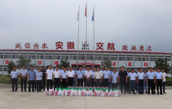 隨后,牛曙東一行深入利辛縣西淝河邵渡口大橋項目現(xiàn)場實地查看項目建設(shè)情況,看望慰問奮戰(zhàn)在施工現(xiàn)場一線的項目管理人員,并現(xiàn)場親自發(fā)放了防暑降溫物品,囑咐他們要注意高溫期間的安全生產(chǎn)和防暑降溫工作。在項目部會議室座談交流中,牛曙東聽取了公司黨委書記、董事長方申柱匯報的安徽交航目前經(jīng)濟(jì)指標(biāo)完成、“1133”發(fā)展目標(biāo)、“54321”發(fā)展戰(zhàn)略以及黨建工作等方面情況,并對安徽交航當(dāng)前工作給予了充分肯定。