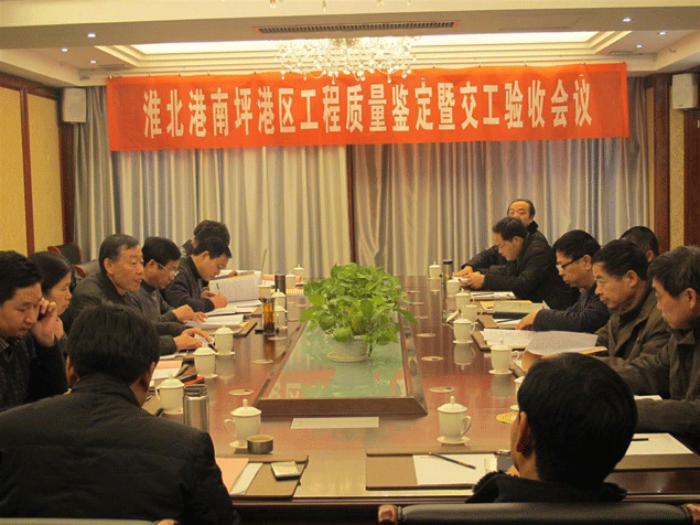 2013年12月31日,由交航公司承建的淮北港南坪港區(qū)工程交工質(zhì)量鑒定會(huì)議在淮北召開(kāi),會(huì)議有安徽省交通質(zhì)監(jiān)局組織主持;安徽省交通質(zhì)監(jiān)局副局長(zhǎng)馬中南、水管處處長(zhǎng)周基群,安徽港投集團(tuán)副總王燦、總助高勝,項(xiàng)目辦主任汪能文,交航公司副總侯力、工程部經(jīng)理李立柱及請(qǐng)聘專家等參加了會(huì)議。