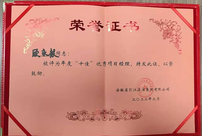 日前,安徽省引江濟(jì)淮集團(tuán)通報(bào)表彰了年度“十佳”優(yōu)秀項(xiàng)目經(jīng)理和先進(jìn)項(xiàng)目部,公司引江濟(jì)淮項(xiàng)目黨支部書記、項(xiàng)目經(jīng)理顧永根獲評(píng)年度“十佳優(yōu)秀項(xiàng)目經(jīng)理”。