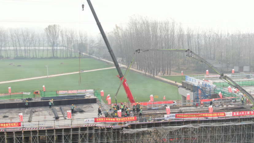11月22日,徐淮阜高速宿州段路基施工02標項目互通區(qū)現(xiàn)澆箱梁混凝土首聯(lián)現(xiàn)澆箱梁完成澆筑,標志著該項目進入橋梁上部結(jié)構(gòu)施工階段。